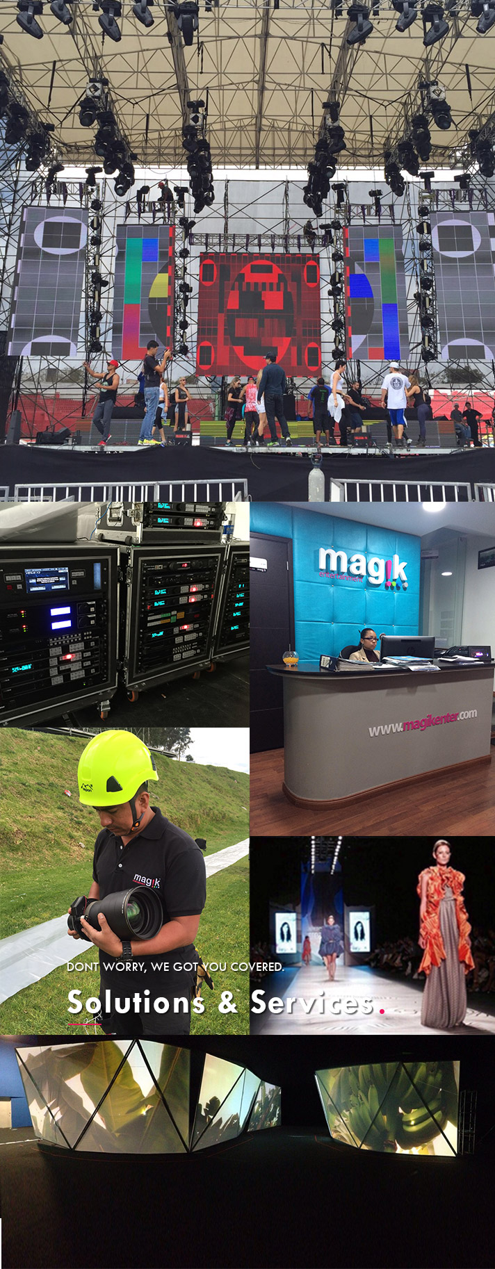 Magik Entertainment® is a live production company in Colombia (South America). We work with the best, for the best & do the best shows in this part of the world, guaranteed. We provide service and solutions for both Small Venue (Magik | Corporate) and Large Venue (Magik | Concerts) events that range from private to corporate events as well as concerts and touring.